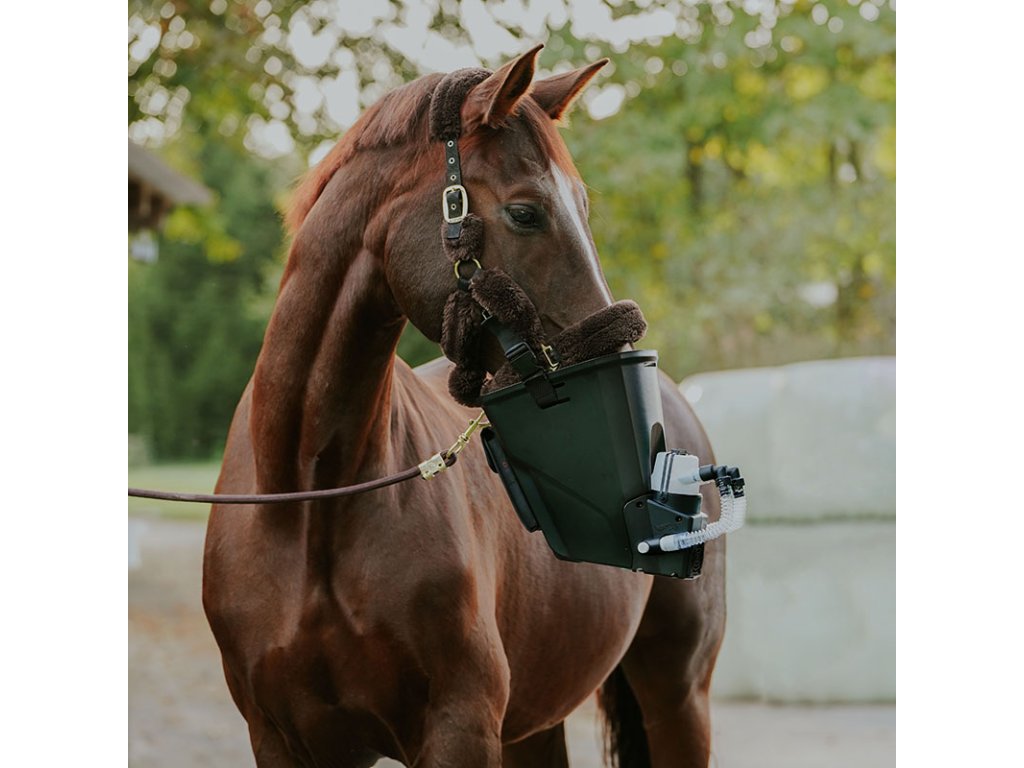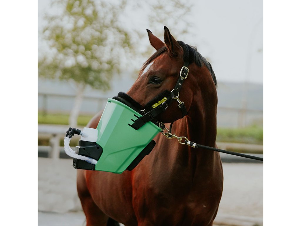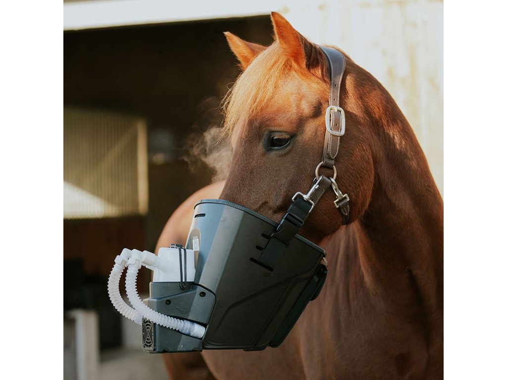 Mobilní ultrazvukový inhalátor pro koně, který umožňuje pohodlné a hygienické dýchací ošetření. Kompletní sada „all-in-one“ s maskou a nezbytným příslušenstvím — ideální pro koně s dýchacími potížemi či náchylností na respirační onemocnění. Snadné použití, přenosný a efektivní.