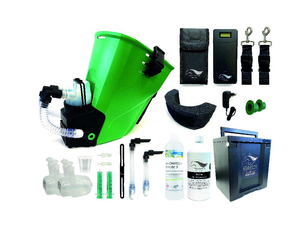 Inhalátor „Free“ je moderní a praktické mobilní zařízení určené pro pohodlnou inhalaci u koní. Díky kompaktní ultrazvukové technologii v kombinaci s ergonomickou maskou představuje kompletní řešení připravené k okamžitému použití — dodávaný je v přenosné krabici společně se vším potřebným příslušenstvím.
