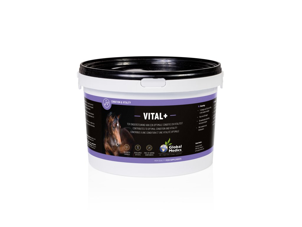 Vital+ je vyvážený vitamínový a minerální doplněk vhodný pro hříbata i dospělé koně. Genetická predispozice, zátěž, ale i výživa hrají důležitou roli ve tvorbě zdravé kostry. Dostatečné zásoby minerálů, jako je vápník, fosfor a hořčík, jsou nezbytné pro správný vývoj kostí. Kromě těchto minerálů hrají stopové prvky, jako je měď a zinek také nezastupitelnou roli.